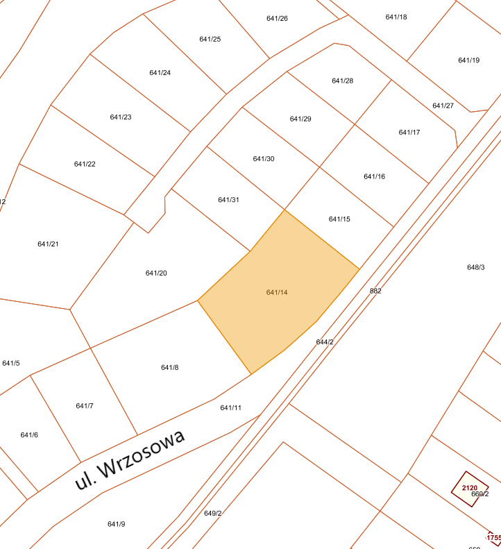 Przedmiotowa nieruchomość niezabudowana bez uzbrojenia w energię elektryczną, wodę, kanalizację i gaz. Blisko 60% powierzchni działki Nr 641/14 zajmuje strefa ochronna dla gazociągu podwyższonego średniego ciśnienia (Dn300; 1,6Mpa) z obowiązującym w jej graniach zakazem zabudowy. Przedmiotowa nieruchomość ma dostęp do drogi publicznej – ul. Azaliowej poprzez działkę nr 641/11 (ul. Wrzosowa).