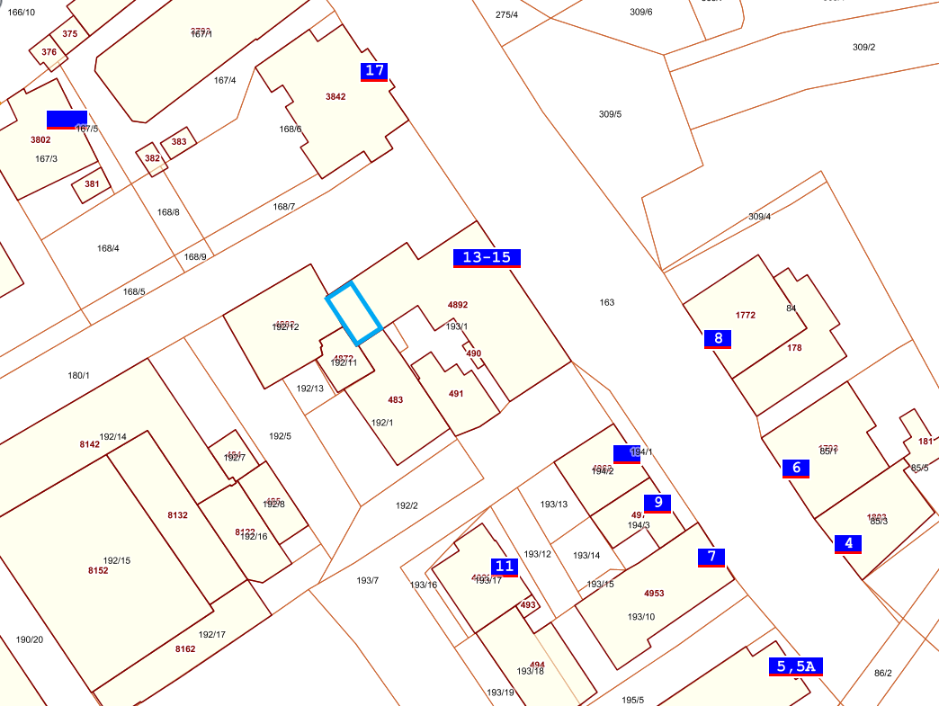 Budynek przy ul. Papieża Jana Pawła II 13-15 położony jest na działce nr 193/1 obręb nr 3 o pow. 638 m2 dla której Sąd Rejonowy IV Wydział Ksiąg Wieczystych z/s w Kamiennej Górze prowadzi Księgę Wieczystą nr JG1K/00013484/9.